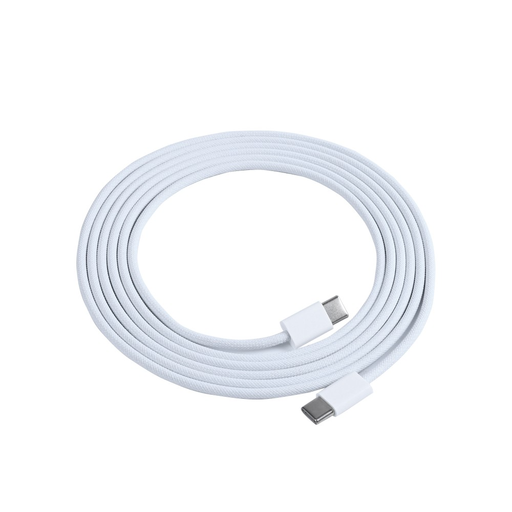100 cm USB‑C to USB‑C woven cable (white) rated 60W. Durable PVC core with nylon weave for tangle resistance and improved durability; supports fast charging and data transfer for iPhone 15 series and other USB‑C devices. Quality: compatible third‑party cable.