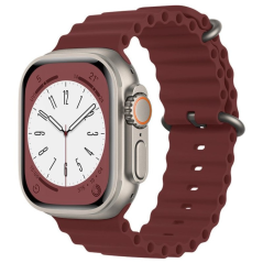 Ocean Breathable Soft Silicone Strap Wine Red for Apple Watch 42 44 45 49mm Size M/L