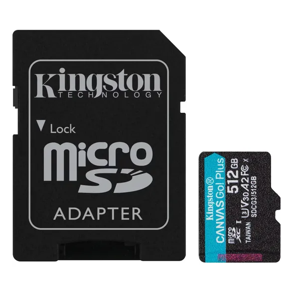 بطاقة ذاكرة Kingston Canvas Select بلس microSD بسعة 64 جيجابايت (الفئة 10، A1) مع محول؛ موثوقة للصور وتسجيل الفيديو عالي الدقة بالكامل.