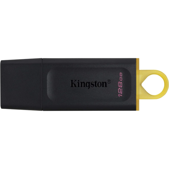 محرك أقراص فلاش Kingston DataTraveler Exodia USB 3.2 Gen1 بسعة 128 جيجابايت باللونين الأسود والأصفر؛ صغير الحجم وسريع ومتين.