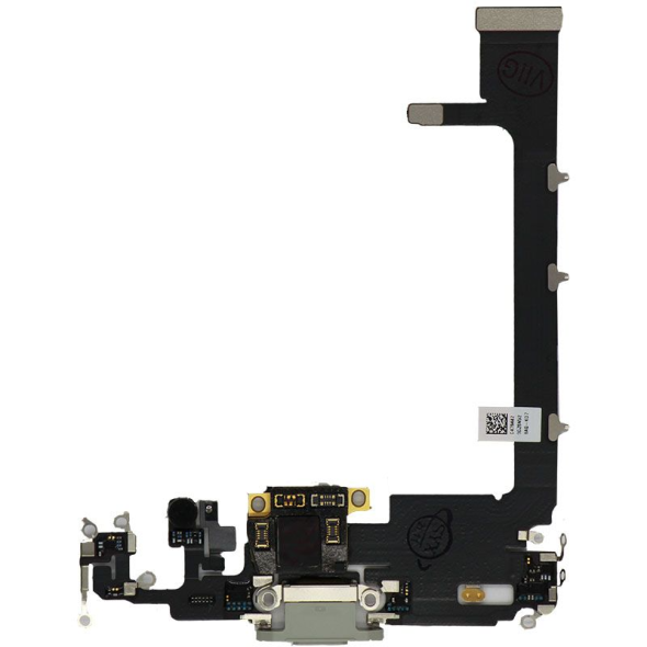 كابل مرن لمنفذ الشحن باللون الفضي غير اللامع؛ تم سحبه من مكانه؛ متوافق مع ايفون 11 برو ماكس (A2161/A2218/A2220).