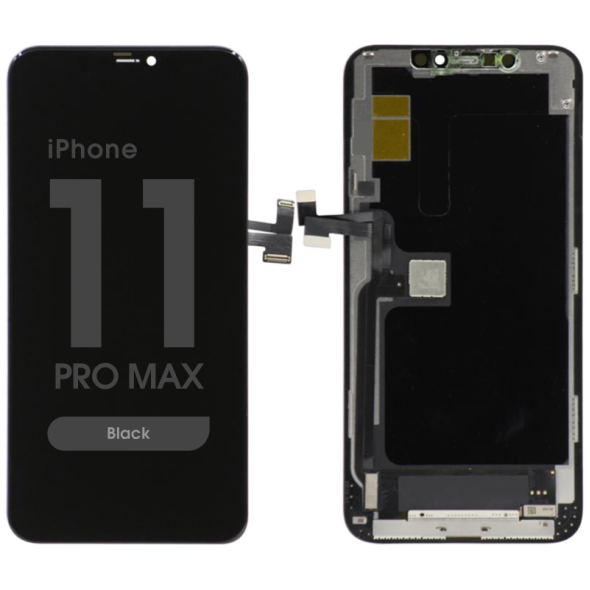 شاشة OLED ناعمة ووحدة شاشة لمس، عالية الجودة مع شريحة قابلة للإزالة، بتردد 60 هرتز، تتضمن إطارًا؛ خيار شاشة OLED مرنة. التوافق: ايفون 11 برو ماكس (A2218/A2161/A2220).
