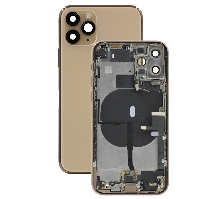 غطاء خلفي كامل مع أجزاء صغيرة، باستثناء البطارية والكاميرا الخلفية، ذهبي اللون؛ متوافق مع ايفون 11 برو (A2215/A2160/A2217).