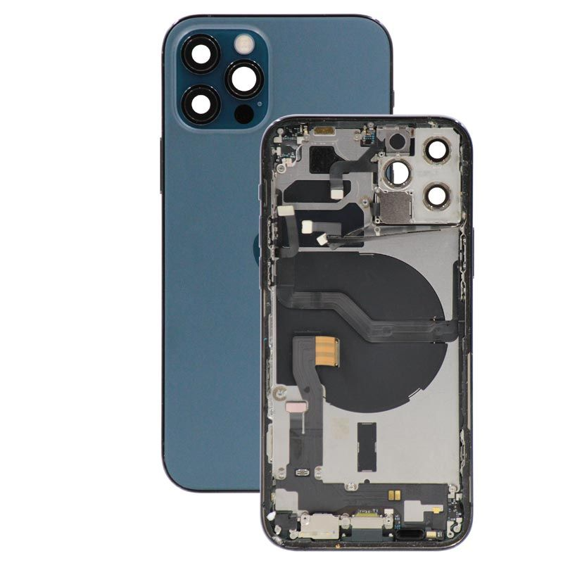 غطاء خلفي كامل مع جميع الأجزاء الصغيرة، باستثناء البطارية، لون أزرق المحيط الهادئ؛ متوافق مع ايفون 12 برو ماكس (A2411/A2342/A2410/A2412).