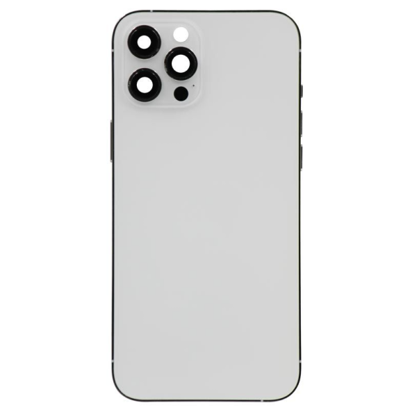 غطاء خلفي كامل مع جميع الأجزاء الصغيرة، باستثناء البطارية والكاميرا الخلفية، فضي اللون؛ متوافق مع ايفون 12 برو ماكس (A2411/A2342/A2410/A2412).