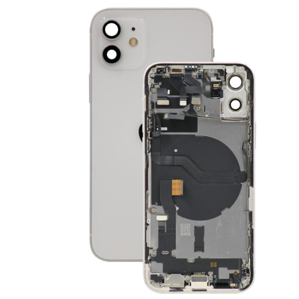 غطاء خلفي كامل مع جميع الأجزاء الصغيرة، باستثناء البطارية، أبيض؛ متوافق مع ايفون 12 (A2403/A2172/A2402/A2404).