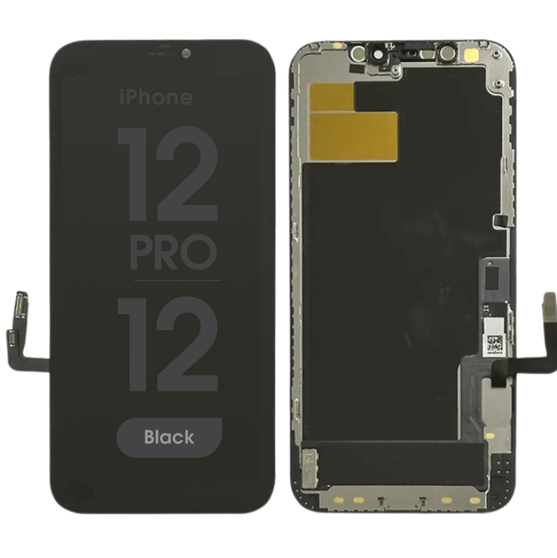 شاشة OLED ناعمة ووحدة شاشة لمس، عالية الجودة مع شريحة قابلة للإزالة، بتردد 60 هرتز، تتضمن إطارًا؛ خيار شاشة OLED مرنة. التوافق: ايفون 12 / 12 برو (تختلف رموز الطراز).