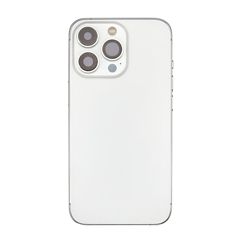 غطاء خلفي كامل مع جميع الأجزاء الصغيرة، باستثناء البطارية والكاميرا الخلفية؛ لون فضي؛ متوافق مع ايفون 13 برو ماكس (A2643/A2484/A2641/A2644/A2645).
