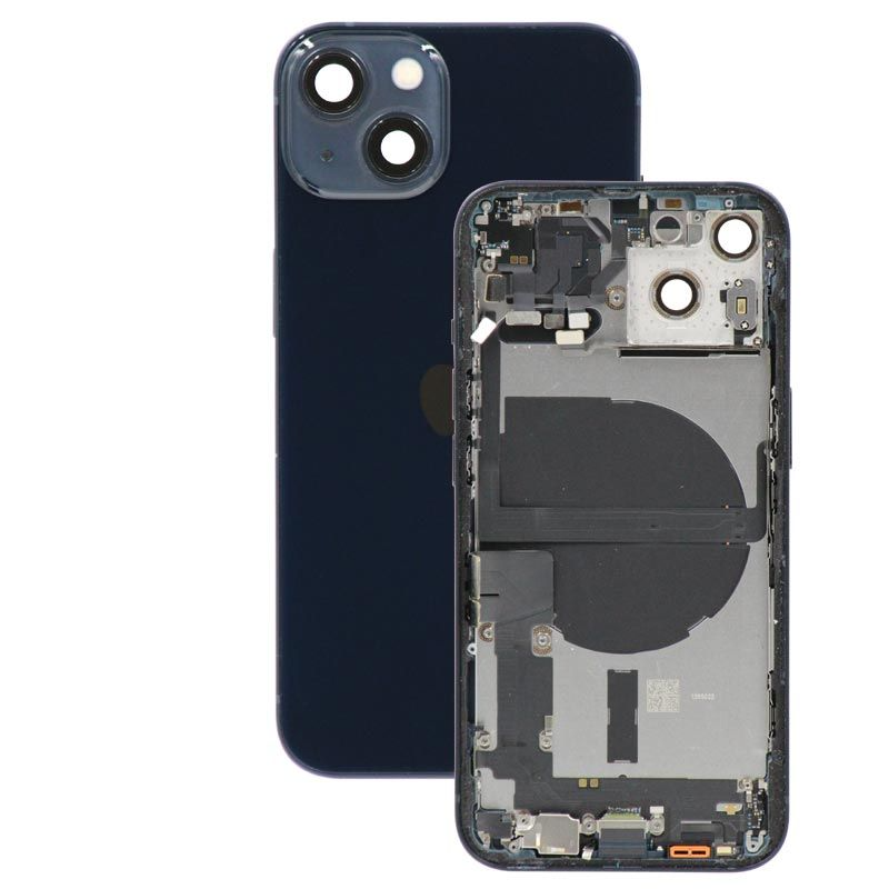 غطاء خلفي كامل مع جميع الأجزاء الصغيرة، باستثناء البطارية والكاميرا الخلفية، لون منتصف الليل (أسود)؛ متوافق مع ايفون 13 (A2633/A2482/A2631/A2634/A2635).