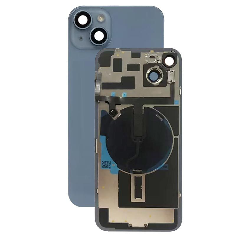 غطاء خلفي كامل مع جميع الأجزاء الصغيرة، باستثناء البطارية والكاميرا الخلفية؛ لون أزرق؛ متوافق مع ايفون 14 بلس (A2632/A2885/A2886/A2887/A2888).