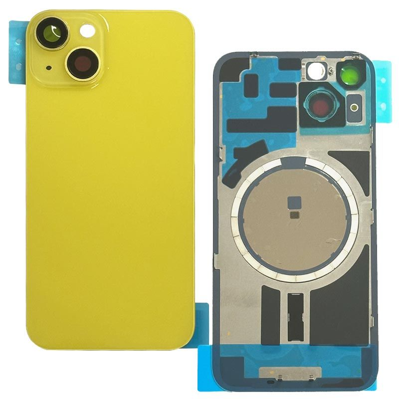 غطاء خلفي كامل مع جميع الأجزاء الصغيرة، باستثناء البطارية والكاميرا الخلفية؛ لون أصفر؛ متوافق مع ايفون 14 بلس (A2632/A2885/A2886/A2887/A2888).