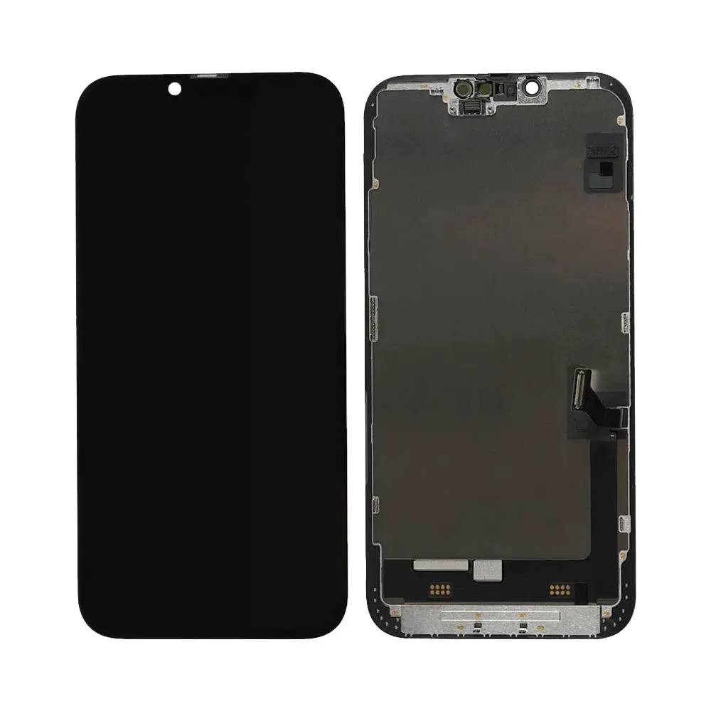 شاشة OLED ناعمة مع وحدة شاشة لمس (شاشة OLED ناعمة، قابلة للإزالة)، 60 هرتز، 6.7 بوصة، تتضمن إطارًا؛ خيار مميز لبعض طرازات الهواتف. التوافق: ايفون 14 بلس (A2886/A2632/A2885/A2896/A288).