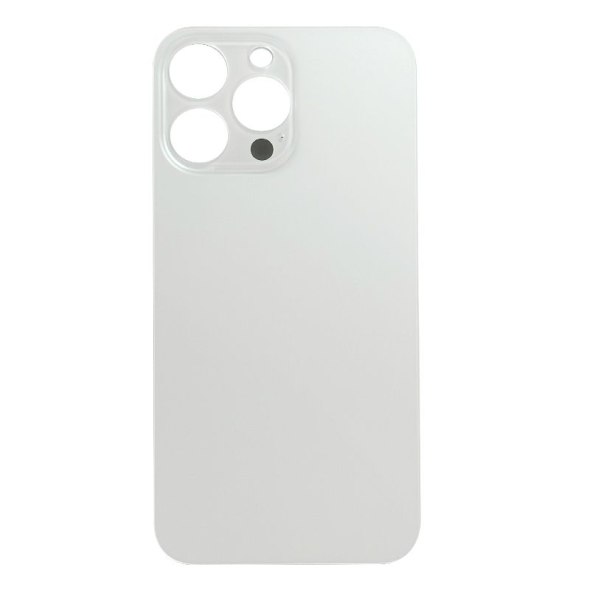 غطاء خلفي بديل من الزجاج الفضي مع إطار كاميرا مُكبّر لهاتف ايفون 14 برو ماكس. مصمم ليناسب الهاتف بدقة ويتمتع بالمتانة، ويعيد إليه مظهره وحمايته بعد التلف.