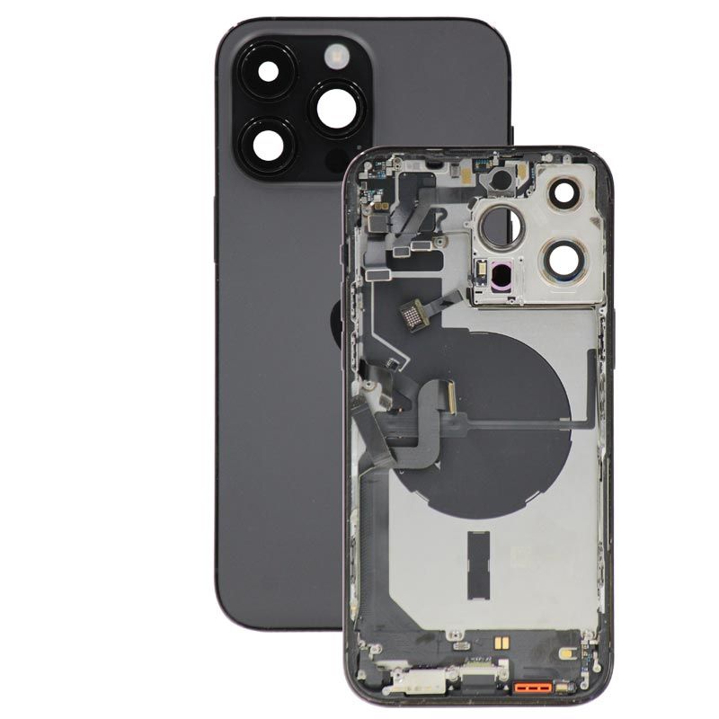 غطاء خلفي كامل مع جميع الأجزاء الصغيرة، باستثناء البطارية والكاميرا الخلفية؛ لون أسود؛ متوافق مع ايفون 14 برو ماكس (A2894/A2651/A2893/A2895).