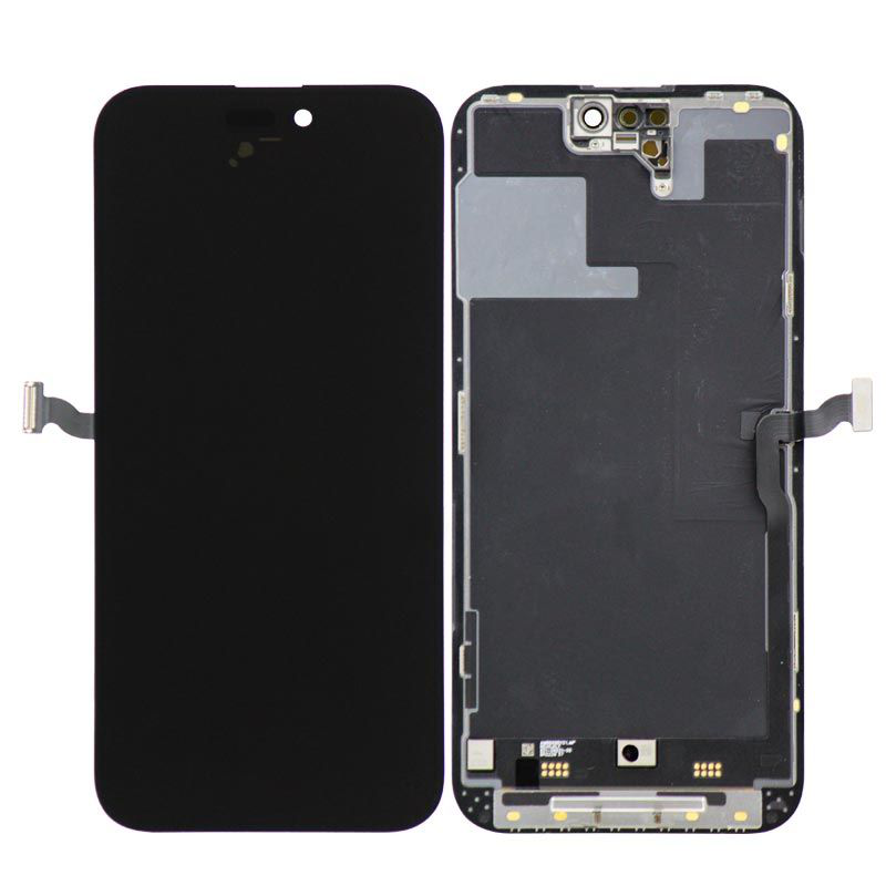 شاشة OLED ناعمة وشاشة لمس، بتردد 120 هرتز، مقاس 6.7 بوصة، مع إطار؛ تدعم تقنية التشخيص ألفا، ولا تتطلب كتابة True Tone. التوافق: ايفون 14 برو ماكس.