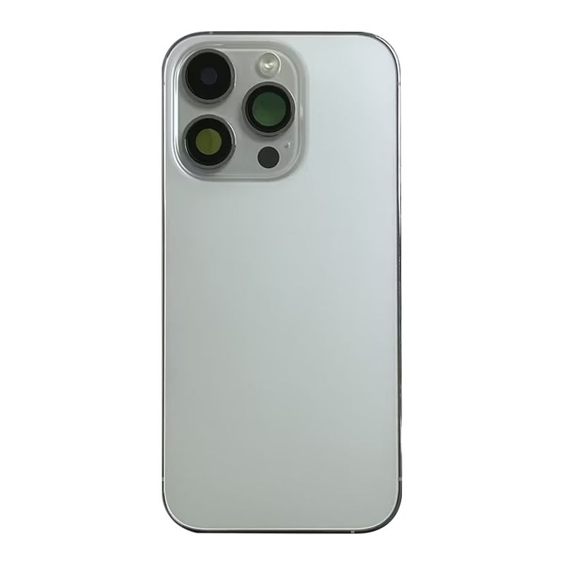 غطاء خلفي كامل مع جميع الأجزاء الصغيرة، باستثناء البطارية والكاميرا الخلفية؛ لون فضي؛ متوافق مع ايفون 14 برو (A2890/A2650/A2889/A2892).