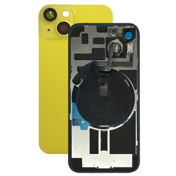 غطاء خلفي كامل مع جميع الأجزاء الصغيرة، باستثناء البطارية والكاميرا الخلفية؛ لون أصفر؛ متوافق مع ايفون 14 (A2649/A2881/A2882/A2883/A2884).