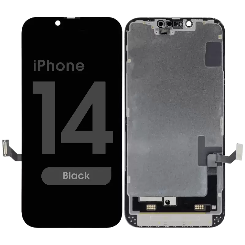شاشة OLED ناعمة مع وحدة شاشة لمس (شاشة OLED ناعمة، قابلة للإزالة)، 120 هرتز، 6.1 بوصة، تتضمن إطارًا. التوافق: ايفون 14 (A2882/A2649/A2881/A2884/A2883).