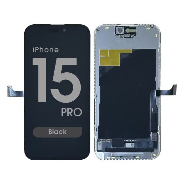 شاشة مدمجة تعمل باللمس، بتردد 60 هرتز، مقاس 6.1 بوصة، مع إطار؛ خيار مميز مزود بدائرة متكاملة قابلة للإزالة لتسهيل عمليات الصيانة. التوافق: ايفون 15 برو (A2848/A3101/A3102/A3104).
