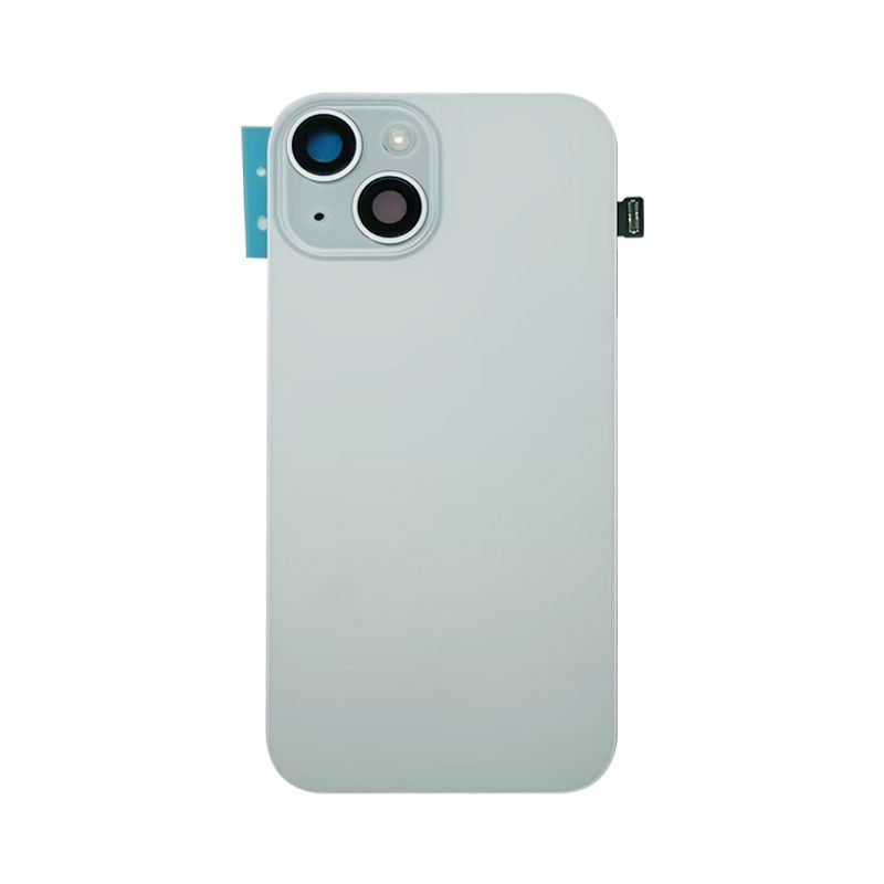 غطاء خلفي كامل مع جميع الأجزاء الصغيرة، باستثناء البطارية والكاميرا الخلفية؛ لون أزرق؛ متوافق مع ايفون 15 (A3090/A2846/A3089/A3092).