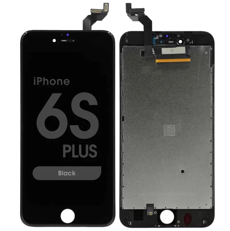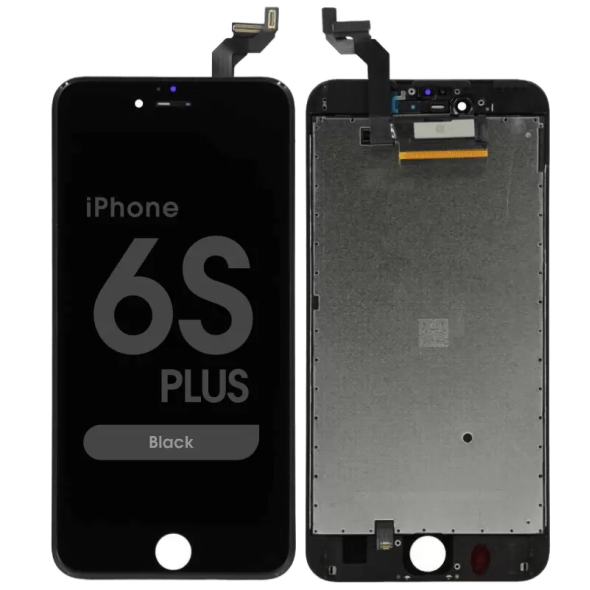 شاشة عرض متوافقة مع هاتف آيفون 6 بلس من آبل، بإطار أسود، تتضمن الإطار؛ تُعيد وظيفة اللمس والعرض. التوافق: آيفون 6 بلس (A1522/A1524/A1593).