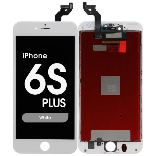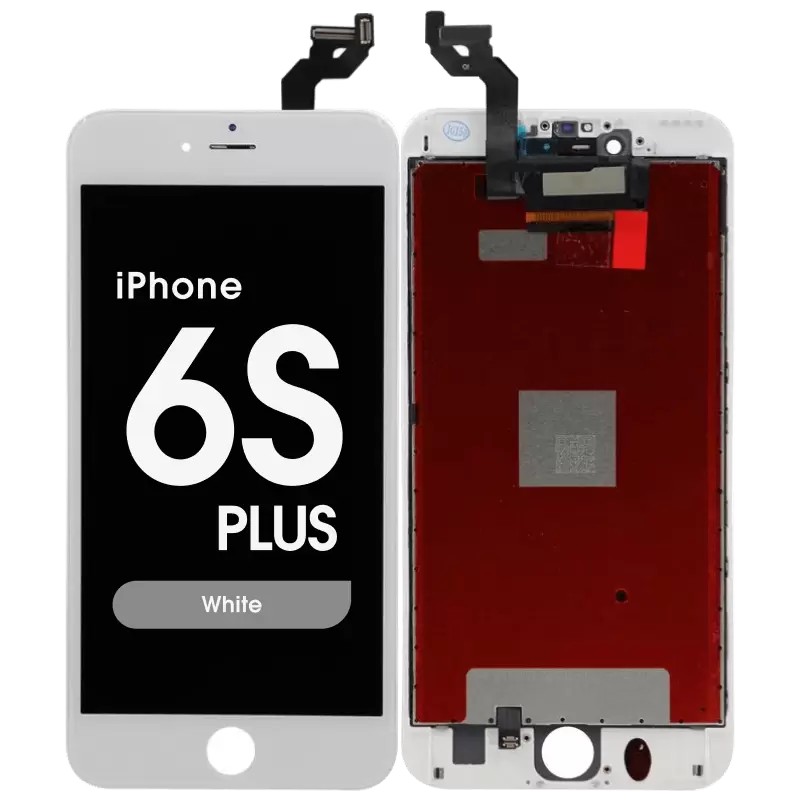 شاشة عرض متوافقة مع هاتف آيفون 6 بلس من آبل، بإطار أبيض، تتضمن الإطار؛ تُعيد وظيفة اللمس والعرض. التوافق: آيفون 6 بلس (A1522/A1524/A1593).