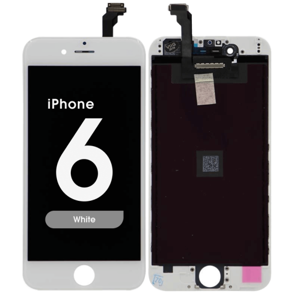 شاشة عرض وشاشة لمس مجددة مع لوحة وإطار معدنيين، وحافة بيضاء؛ تعيد اللمس والعرض. التوافق: آيفون 6 (A1549/A1586/A1589).