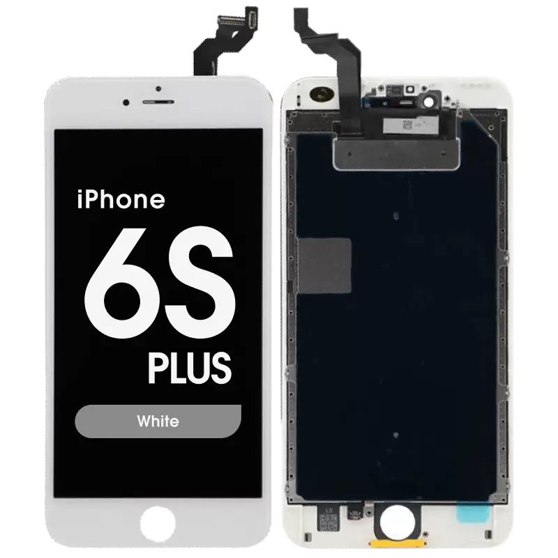 شاشة عرض متوافقة مع هاتف آيفون 6 إس بلس من آبل، بإطار أبيض، تتضمن الإطار؛ تُعيد وظيفة اللمس والعرض. التوافق: آيفون 6 إس بلس (A1634/A1687/A1690/A1699).