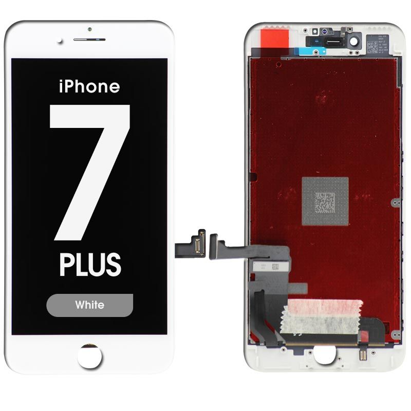 شاشة عرض ريتينا IPS LCD متوافقة (DTP/C3F) لهاتف آيفون 7 بلس، بإطار أبيض، تشمل الإطار؛ تُعيد وظيفة اللمس والعرض. التوافق: آيفون 7 بلس (A1661/A1785/A1786/A1784).