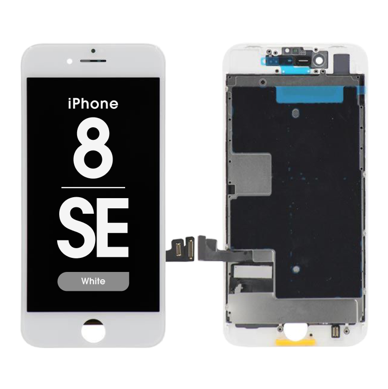 شاشة IPS بإضاءة خلفية LED متوافقة، بدقة 750×1334، بإطار أبيض، تتضمن الإطار؛ تُعيد وظيفة اللمس والعرض. التوافق: ايفون 8 / SE (2020) (A1863/A1906/A1907/A1905/A2595/A2782/A2783/A2784/A2785).