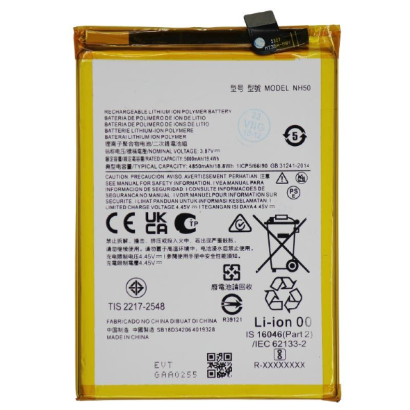 بطارية NH50 متوافقة مع موتو G22 و E32s؛ مصممة لتلبية المواصفات الأصلية، وتفاصيل السعة والأداء في الوصف.