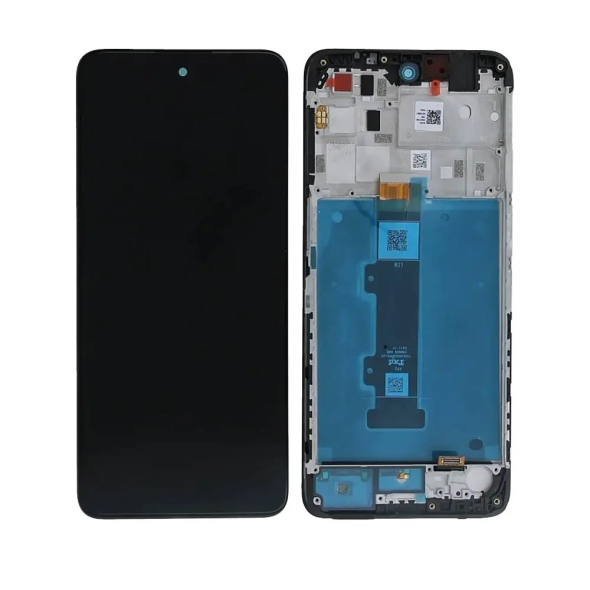 مجموعة شاشة الخدمة مع إطار لهاتف موتو E32s؛ تم اختبارها للتأكد من المحاذاة وموثوقية شاشة اللمس لتبسيط عمليات الإصلاح.