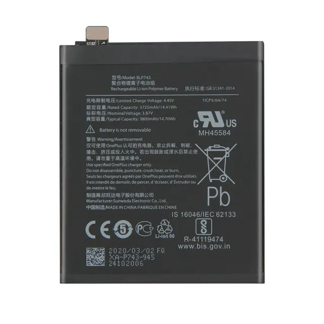 بطارية ليثيوم بوليمر متوافقة BLP743 متوافقة مع ون بلس 7T؛ خلية غير قابلة للإزالة مصنعة وفقًا للمواصفات الأصلية من حيث السعة والشحن السريع.
