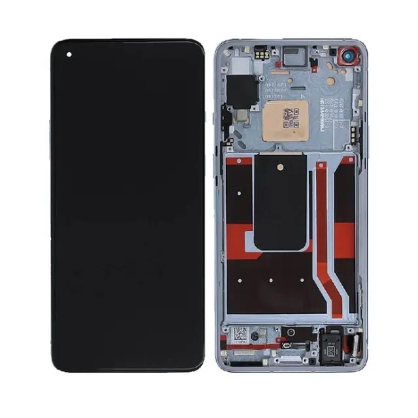 شاشة كاملة مع إطار لجهاز ون بلس 8T KB2003 باللون الفضي القمري؛ تعمل مجموعة الاستبدال على استعادة شاشة اللمس والتشطيب.