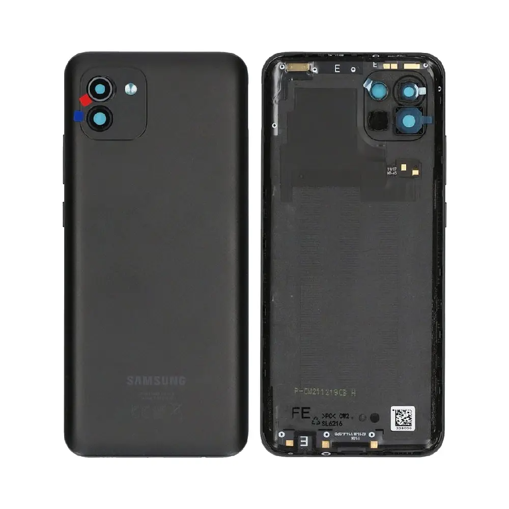 غطاء خلفي بديل، أسود اللون، متوافق مع كاميرا A03 Core وتصميم المنافذ