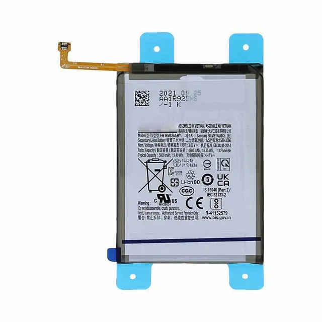 بطارية ليثيوم أيون غير قابلة للإزالة بسعة 5000 مللي أمبير متوافقة مع طرازات سامسونج المدرجة؛ تدعم الشحن السريع بقوة 25 وات، وحدة تم اختبارها مسبقًا.