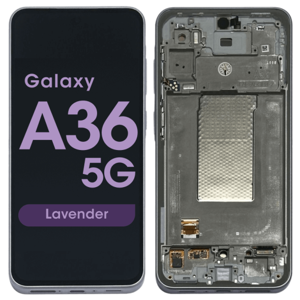 شاشة Super AMOLED كاملة مقاس 6.7 بوصة بتردد 120 هرتز ودقة 1080 × 2340 مع إطار لهاتف جلاكسي A36 A366B باللون الخزامي؛ جودة حزمة الخدمة.