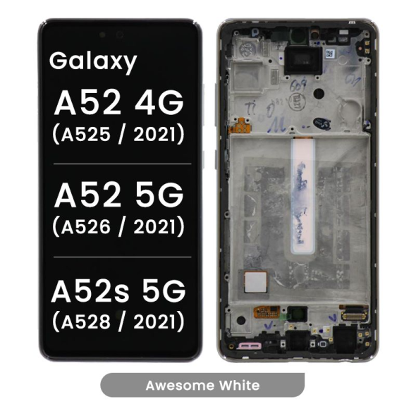 شاشة Super AMOLED كاملة مقاس 6.5 بوصة بدقة 1080x2400 مع إطار لسلسلة جلاكسي A52؛ لون أبيض رائع؛ جودة حزمة الخدمة.