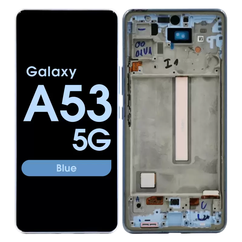 شاشة Super AMOLED كاملة مقاس 6.5 بوصة بتردد 120 هرتز ودقة 1080 × 2400 مع إطار لهاتف جلاكسي A53 A536B باللون الأزرق؛ جودة OLED ناعمة.