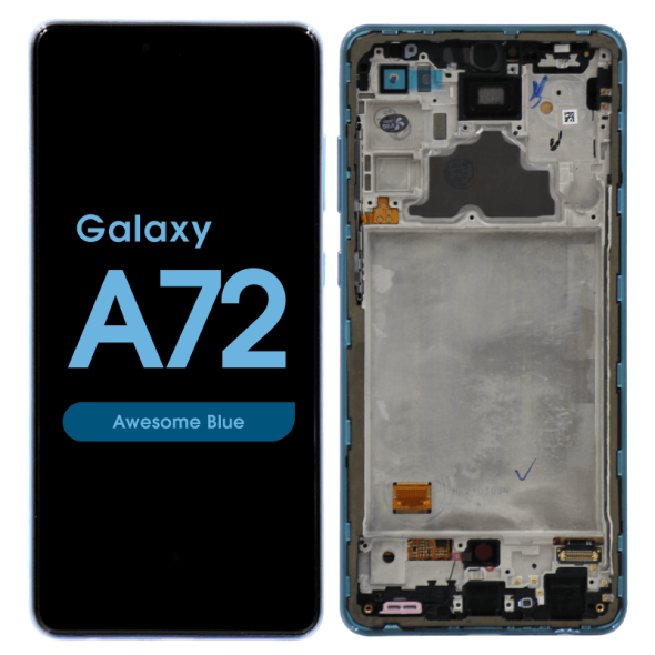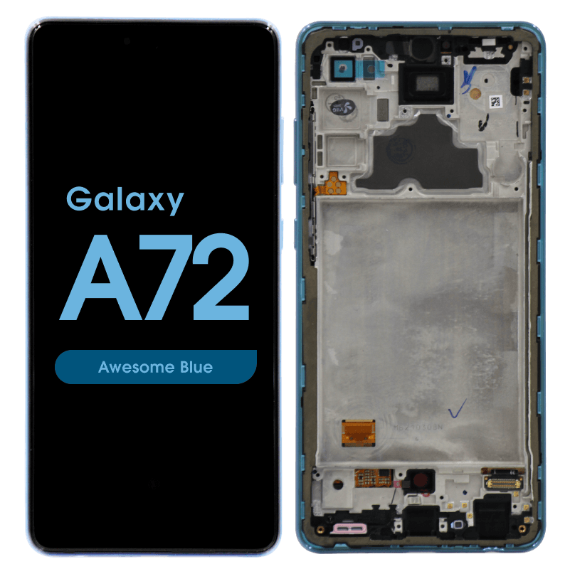 شاشة Super AMOLED كاملة مقاس 6.7 بوصة بتردد 90 هرتز ودقة 1080 × 2400 مع إطار لهاتف جلاكسي A72 SM-A725 باللون الأزرق؛ لا تشمل البطارية؛ جودة حزمة الخدمة.