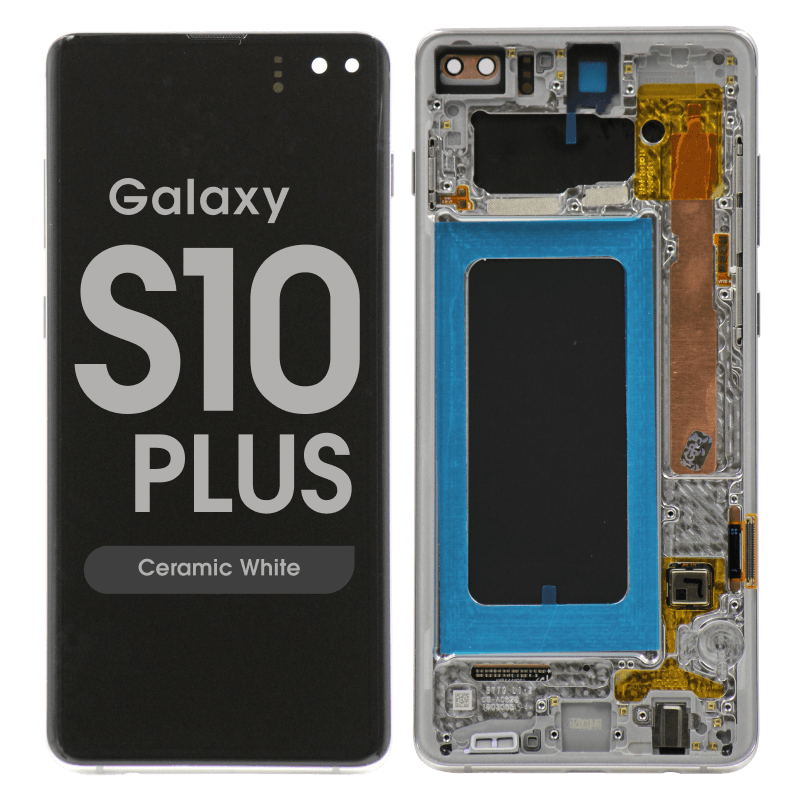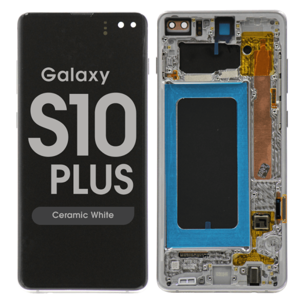 شاشة كاملة Dynamic AMOLED مقاس 6.4 بوصة بدقة 1440x3040 مع إطار لهاتف جلاكسي S10+ SM-G975F باللون الأبيض السيراميكي؛ جودة حزمة الخدمة.