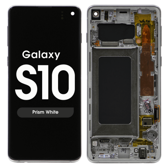 شاشة كاملة Dynamic AMOLED مقاس 6.1 بوصة بدقة 1440x3040 مع إطار لهاتف جلاكسي S10 SM-G973F باللون الأبيض المنشوري؛ جودة حزمة الخدمة.