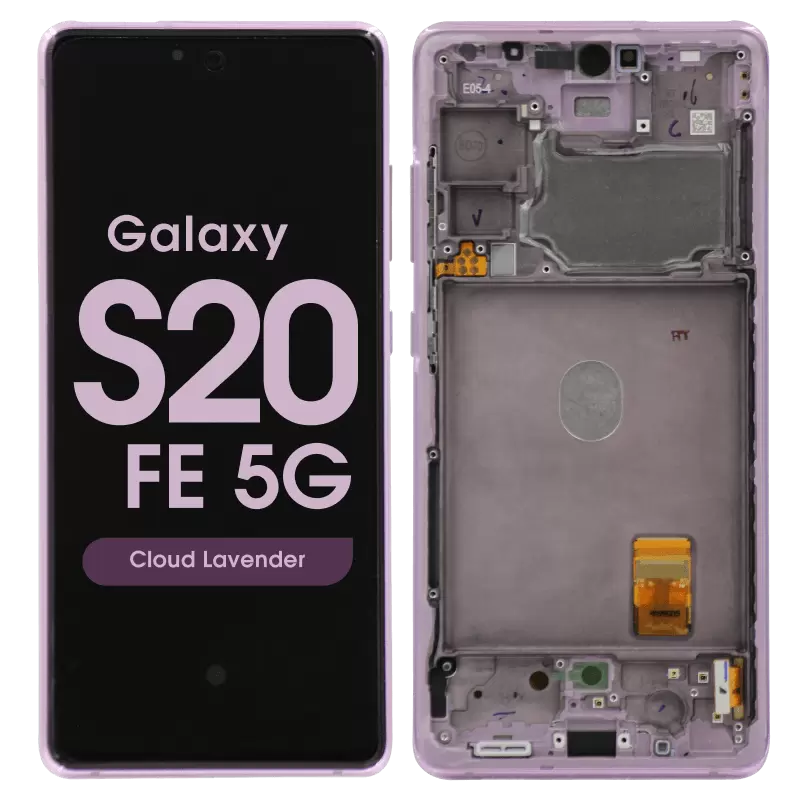 شاشة Super AMOLED كاملة مقاس 6.5 بوصة بدقة 1080x2400 ومعدل تحديث 120 هرتز مع إطار لهاتف جلاكسي S20 FE؛ لون لافندر سحابي؛ جودة حزمة الخدمة.
