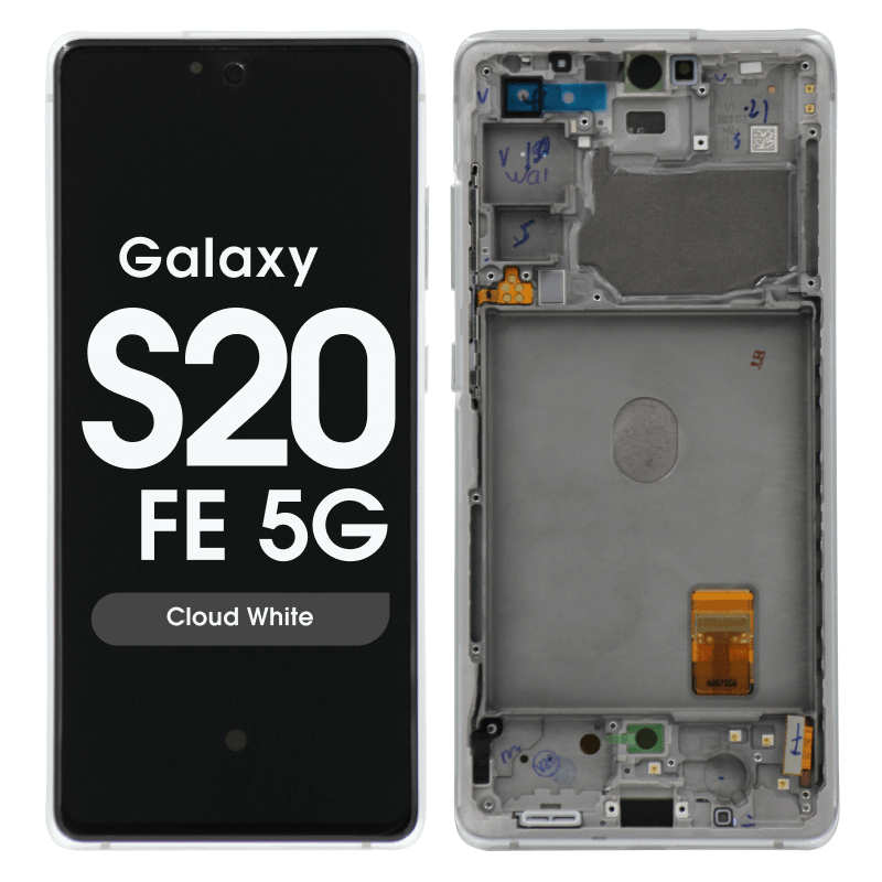 شاشة Super AMOLED كاملة مقاس 6.5 بوصة بدقة 1080x2400 ومعدل تحديث 120 هرتز مع إطار لهاتف جلاكسي S20 FE؛ لون أبيض سحابي؛ جودة حزمة الخدمة.
