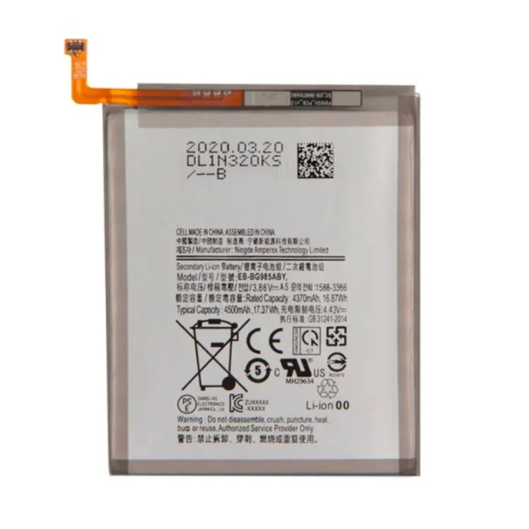 بديل من الدرجة الأصلية لهاتف S20+ تم ضبطه لمنحنيات الشحن الأصلية ونقاط قطع الأمان، وتم اختباره للتأكد من توافقه مع الشحن التكيفي (حزمة الخدمة).