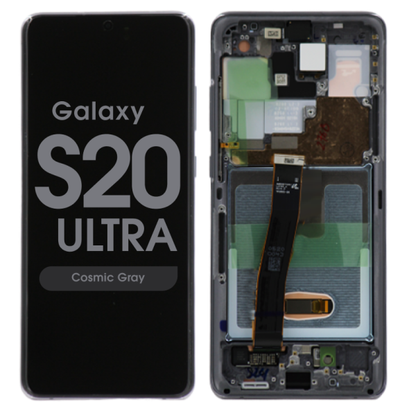 شاشة كاملة Dynamic AMOLED 2X مقاس 6.9 بوصة بدقة 1440x3200 مع إطار لهاتف جلاكسي S20 الترا SM-G988B باللون الرمادي؛ جودة حزمة الخدمة.