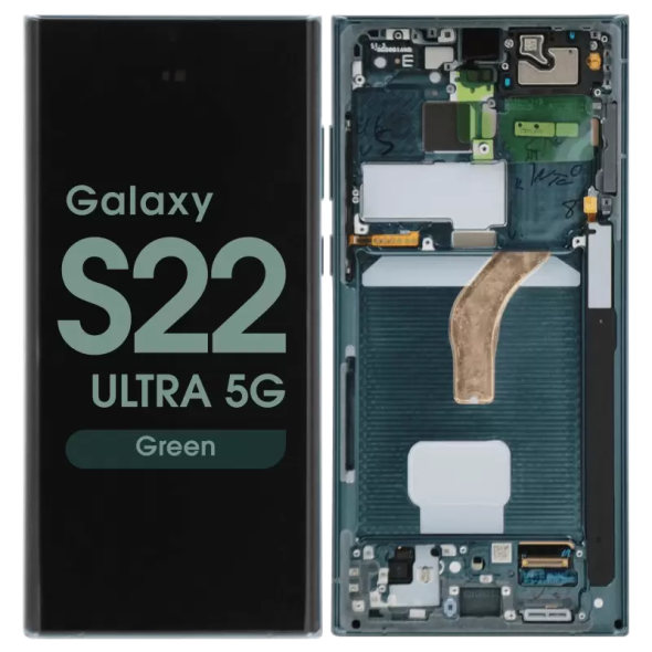 شاشة كاملة Dynamic AMOLED 2X مقاس 6.8 بوصة بدقة 1440x3088 مع إطار لهاتف جلاكسي S22 الترا SM-S908B باللون الأخضر؛ جودة حزمة الخدمة.