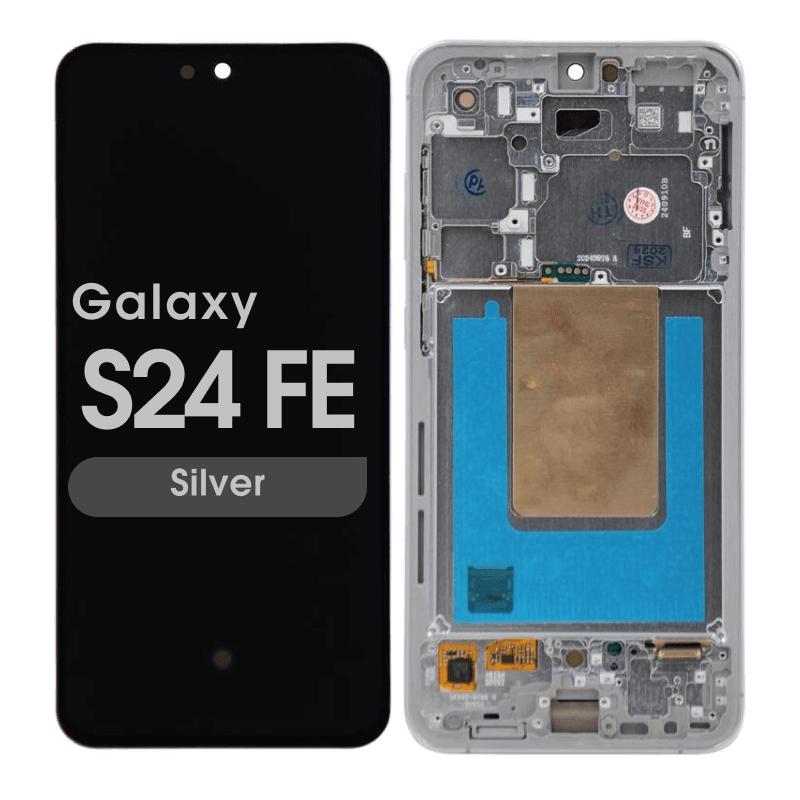 شاشة Dynamic AMOLED كاملة مقاس 6.7 بوصة بدقة 1080x2340 مع إطار GH82-35848B لهاتف جلاكسي S24 FE SM-S721B باللون الفضي؛ جودة حزمة الخدمة.