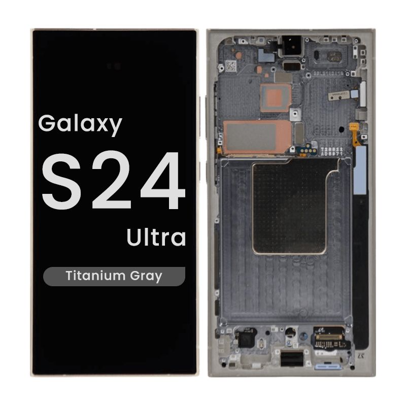 شاشة كاملة مع إطار لهاتف جلاكسي S24 الترا SM-S928B باللون الرمادي التيتانيوم؛ حالة مستعملة.