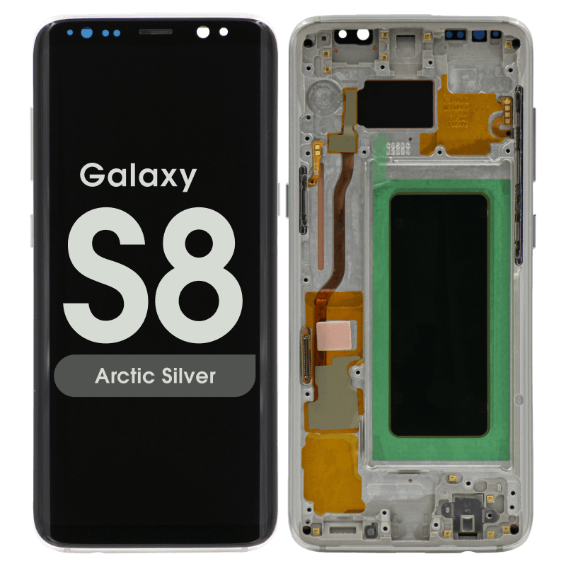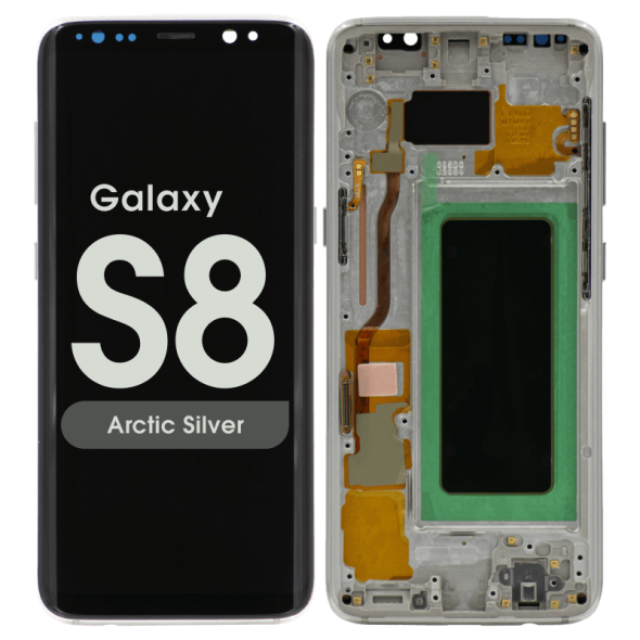 شاشة Super AMOLED كاملة مقاس 5.8 بوصة بدقة 1440x2960 مع إطار لهاتف جلاكسي S8 SM-G950F باللون الفضي؛ جودة حزمة الخدمة.